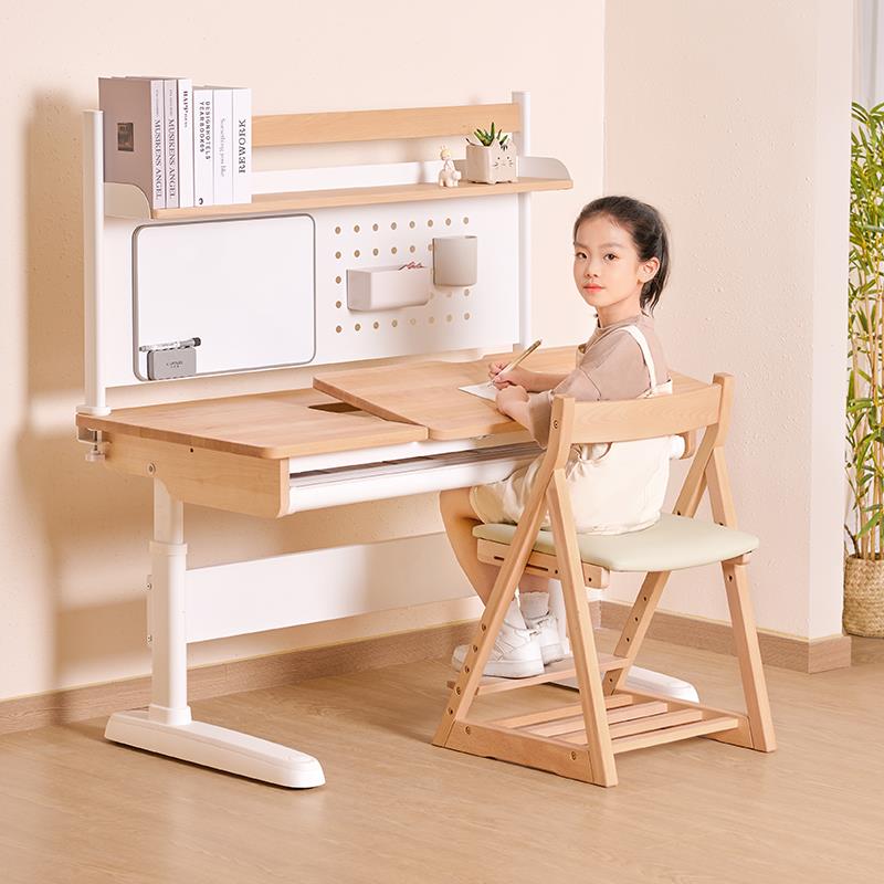 拉特丽儿童学习桌小学生书桌可升降桌子实木写字桌家用榉木椅套装