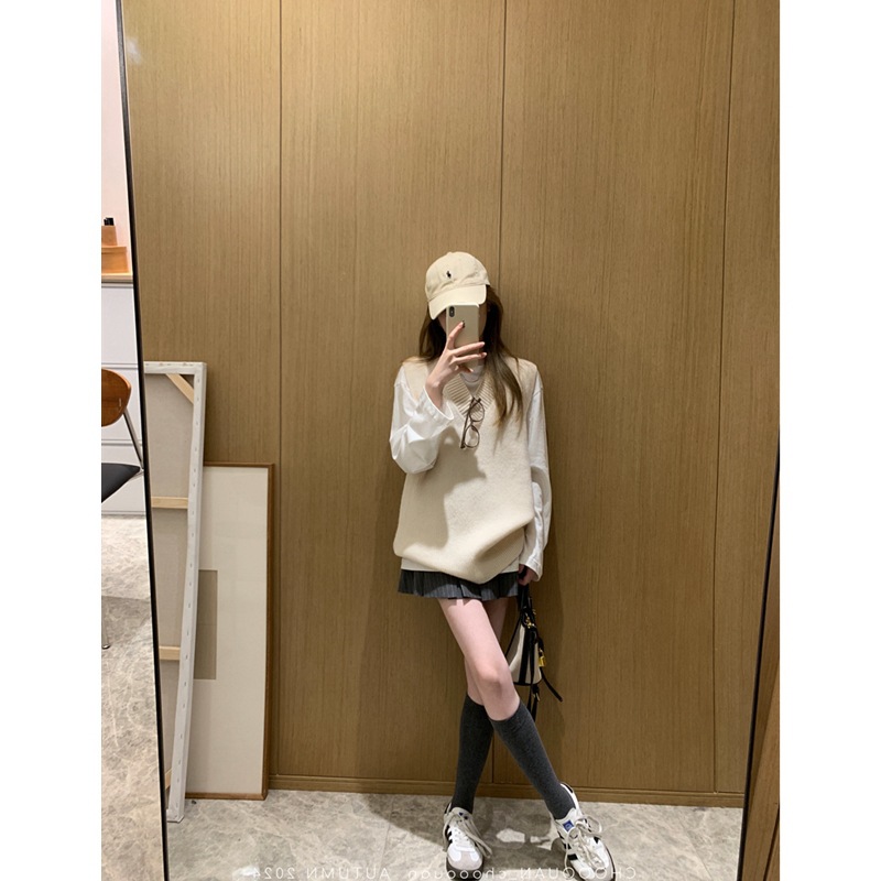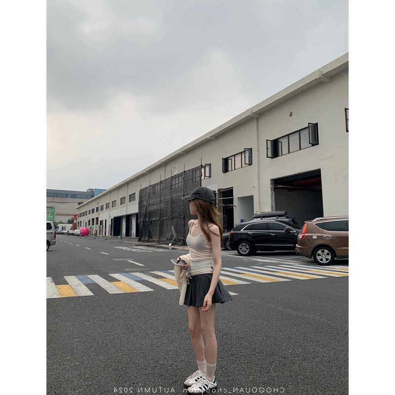 miu系学院 仿毛TR面料 双腰袢条纹百褶短裙(带安荃裤)