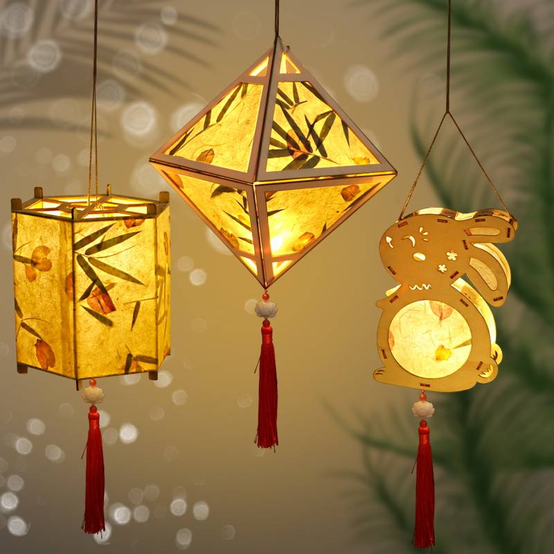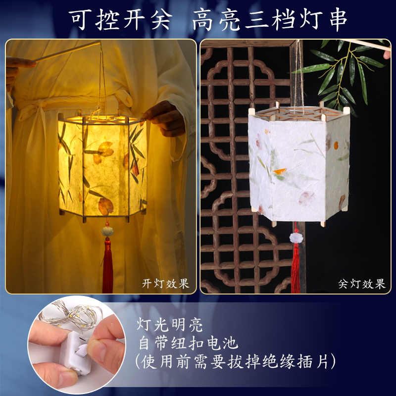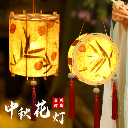 中秋节非遗花草纸灯笼手工diy材料包古风儿童手提发光玉兔花灯