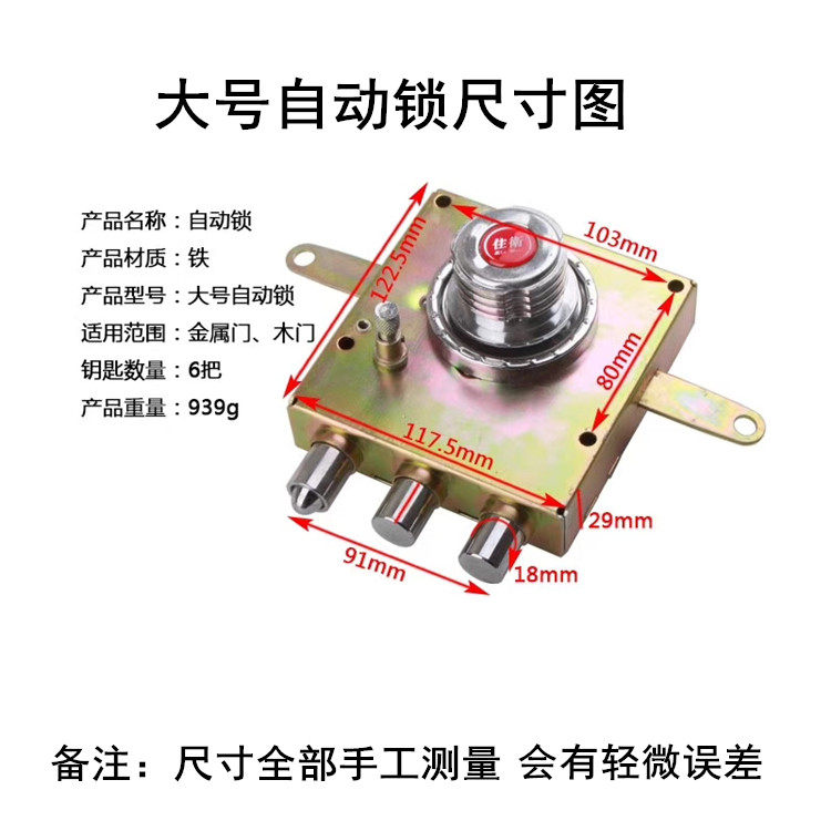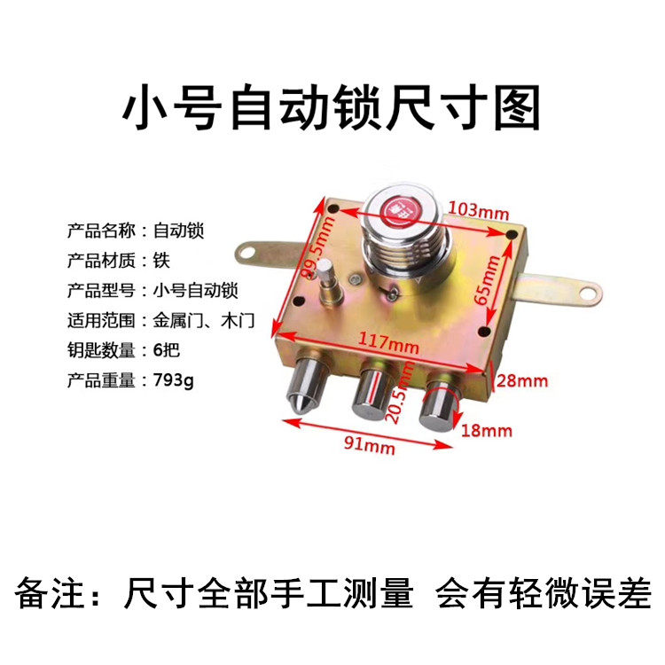 老式防盗门自动锁 自动碰锁锁体 十字锁芯 铁门碰锁大号中号小号