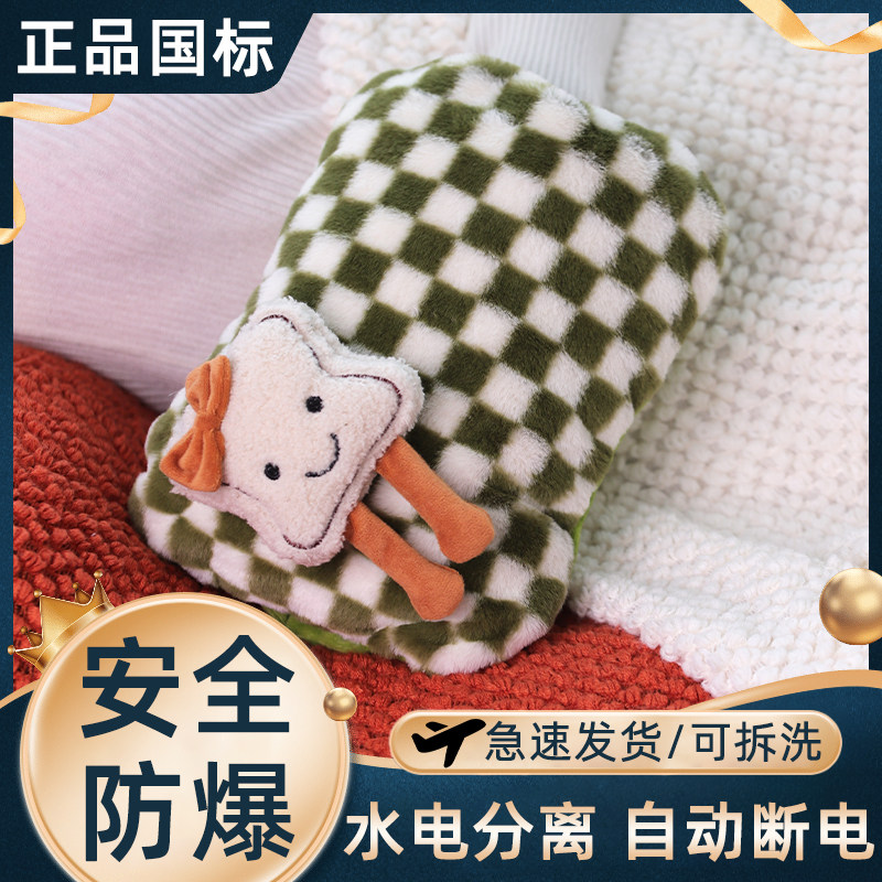 国标花边鸡热水袋充电式防爆暖水袋可爱毛绒女暖肚子暖手宝电热宝