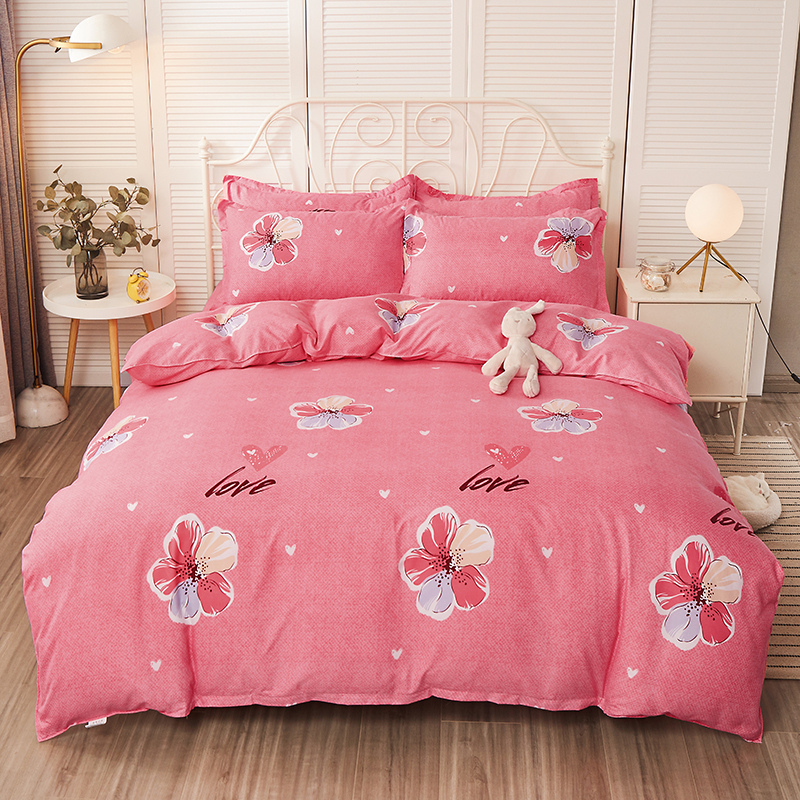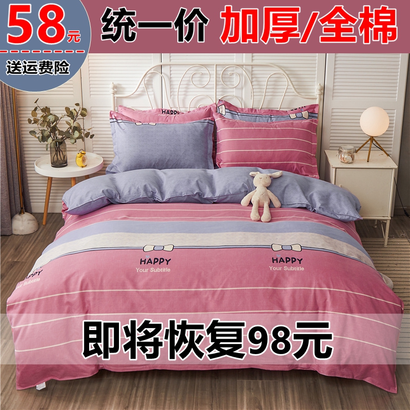 四件套全棉磨毛加厚床上用品纯棉被罩床单式被套1.8双人婚庆4件套