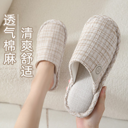 小香风吸汗透气棉麻布拖鞋