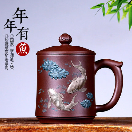 紫砂杯宜兴紫砂纯全手工男女士家用大容量小泡茶杯子带盖过滤内胆