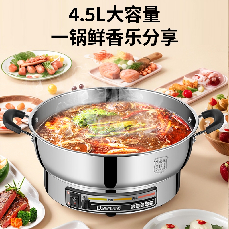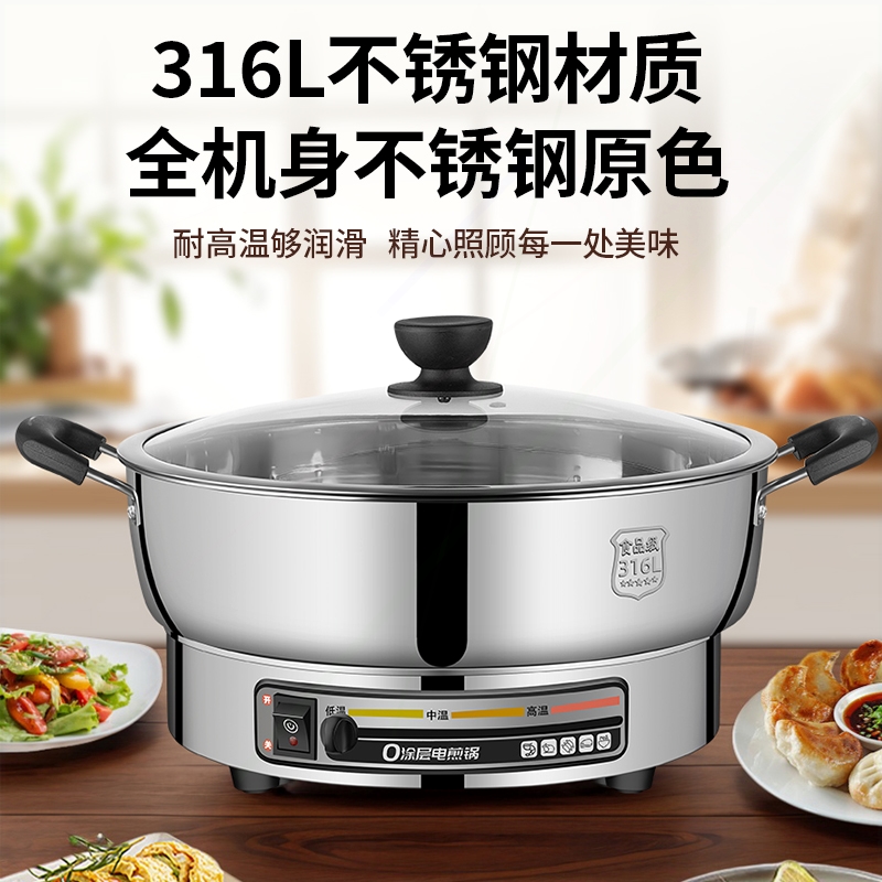 饼铛多功能不易粘电煎锅火锅一体烙饼锅煎烤锅无涂层316L不锈钢电