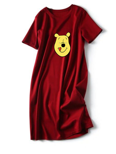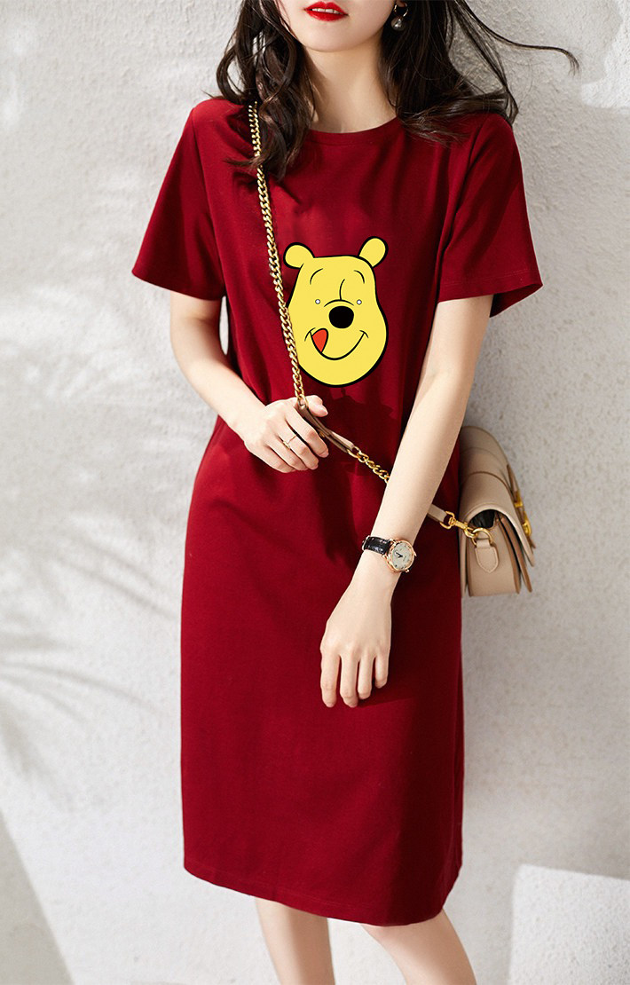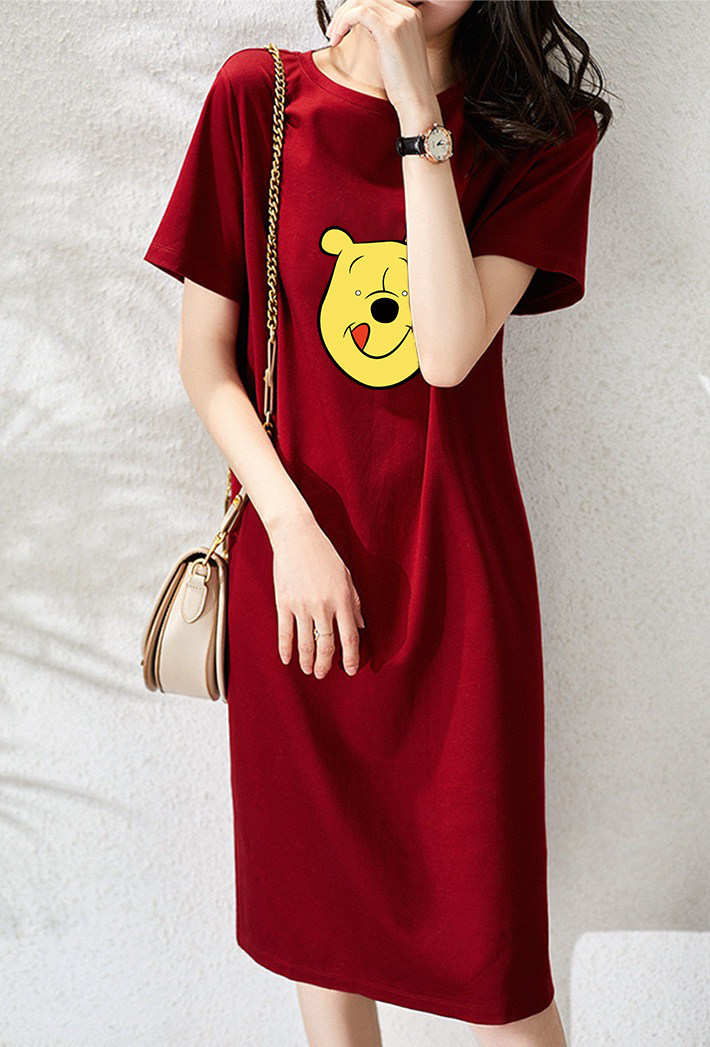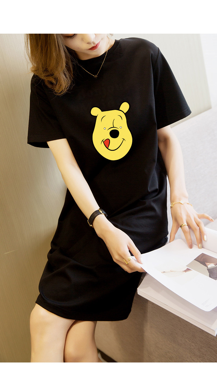夏季新款女装宽松显瘦卡通印花T恤连衣裙学生通勤中长款仙女裙潮