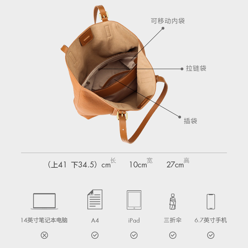 红谷女包牛皮通勤托特包松弛感时尚都市女性大单肩包