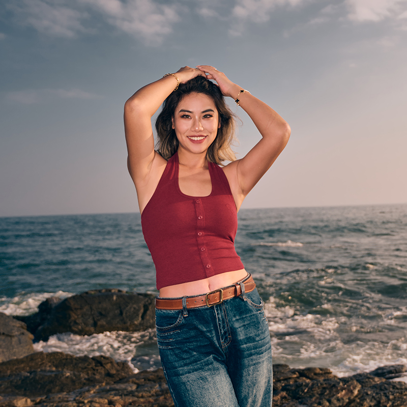 老友记系列·度假挂脖背心吊带女美式运动休闲带胸垫上衣健身BRA