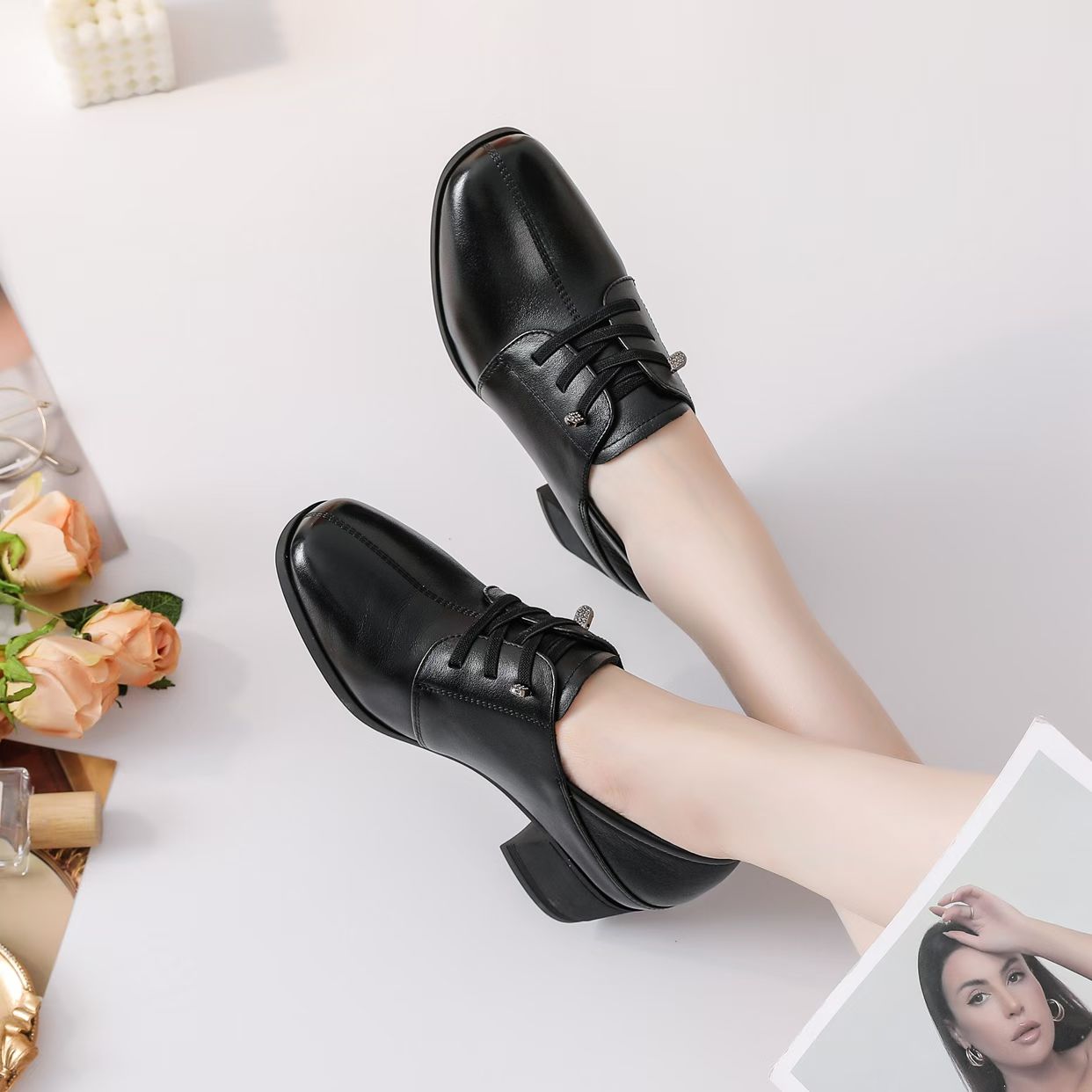 母后真皮女鞋春季新款英伦风高跟单鞋真皮舒适百搭时尚工作鞋单鞋