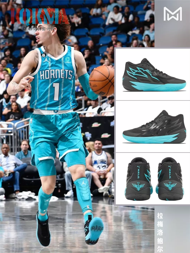 Puma彪马MB.02拉梅洛鲍尔三球二代黑蓝色男子实战篮球鞋 377644