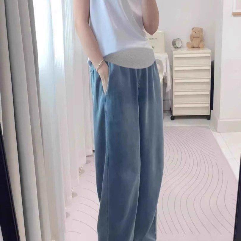 孕妇牛仔裤夏季薄款裤子2025新款外穿打底阔腿裤孕妇装穿搭直筒裤
