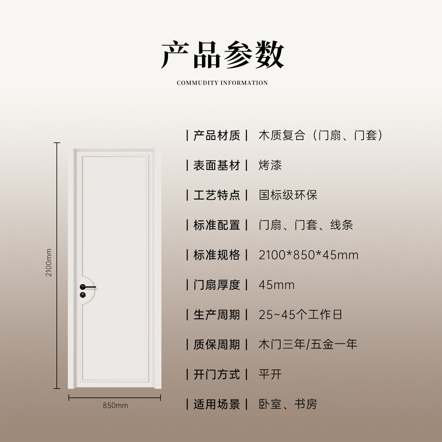 美心木门卧室门隔音环保烤漆实木内填家用门室内门简约定制平开门