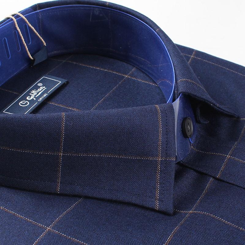 金利来含羊毛长袖衬衫秋冬翻领格子标准款商务衬衣MCL21131433-85