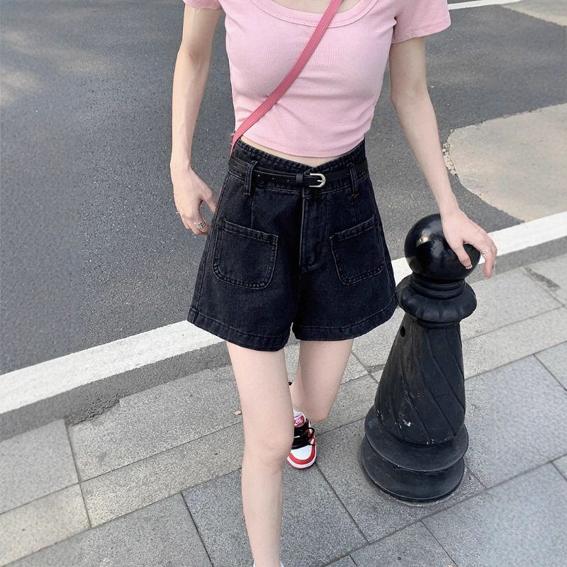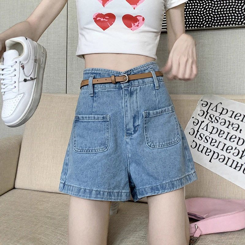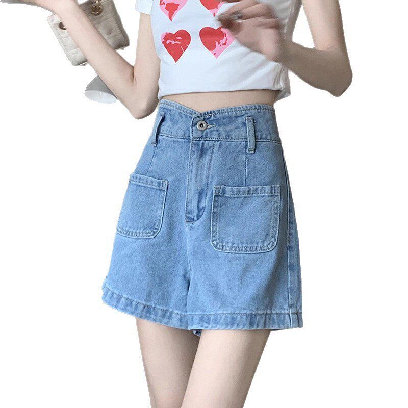 高腰字大码显瘦热裤宽松新款胖mm女直筒裤a夏季2025牛仔短裤阔腿