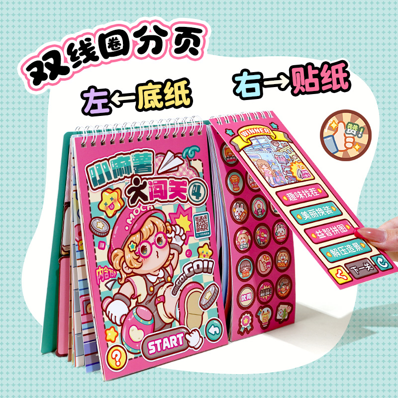小麻薯闯关游戏本贴纸画书女孩儿童解压玩具免裁剪手工diy学生安静书装饰小学生粘贴安静书贴纸贴画玩具素材