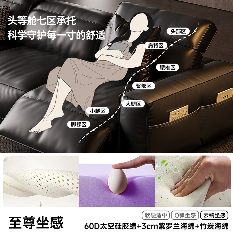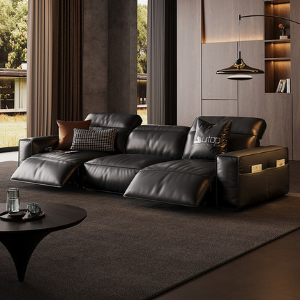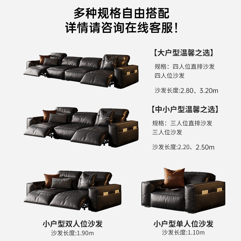 意式极简豆腐块高端轻奢真皮沙发电动功能客厅直排零靠墙直排沙发