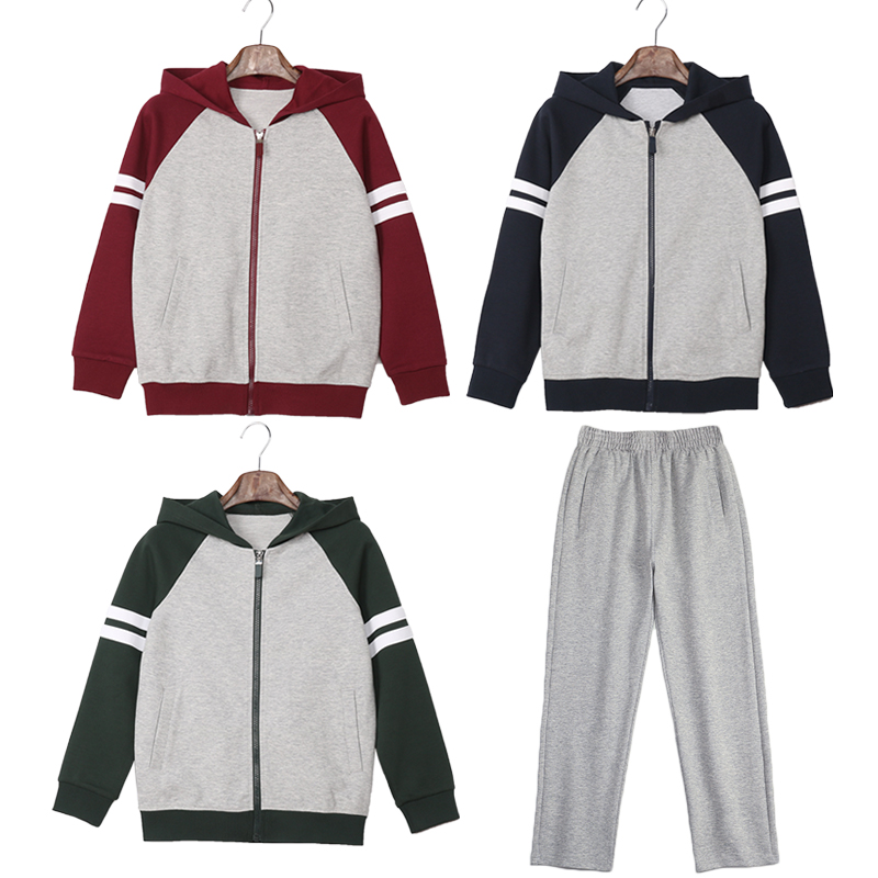 儿童棒球服连帽男童外套春秋墨绿小学生校服女童枣红藏青灰色裤子