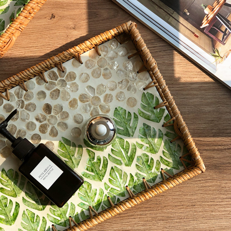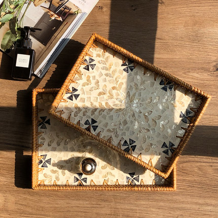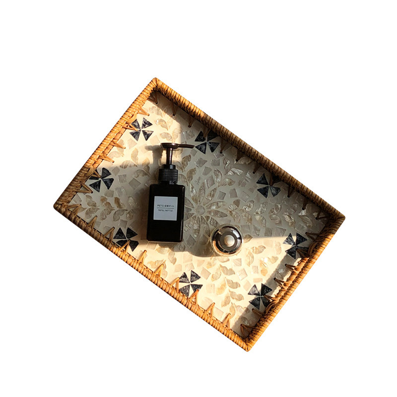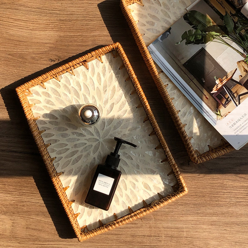 法式轻奢高档天然越南藤编贝壳托盘家用客厅茶几茶盘收纳水果盘子