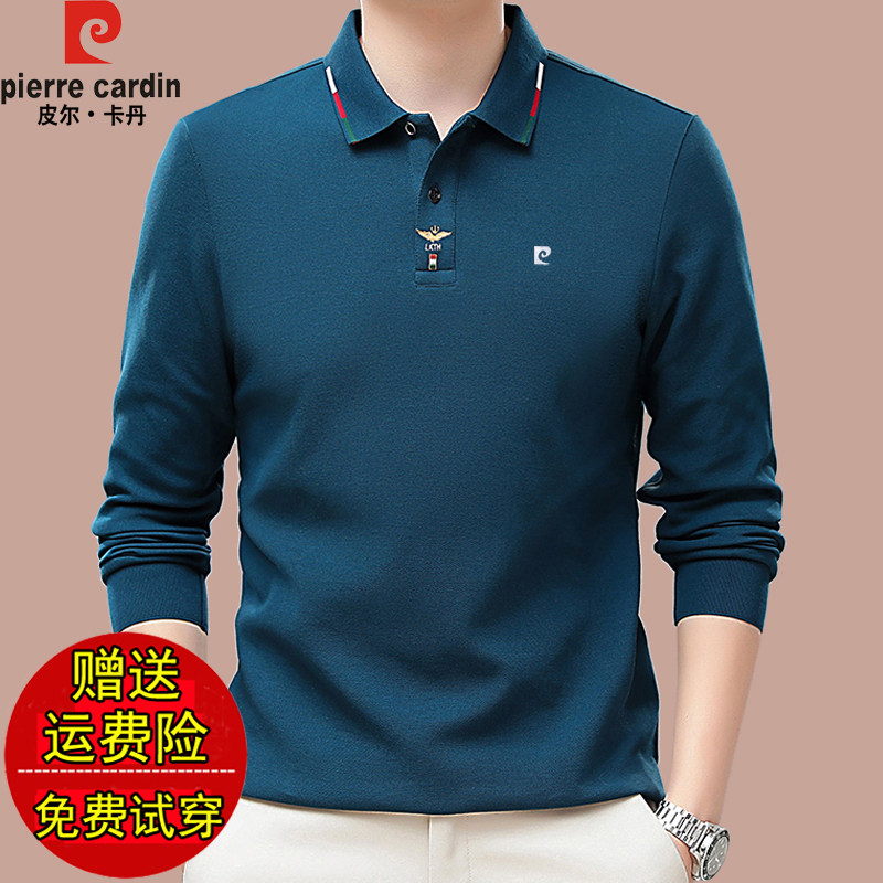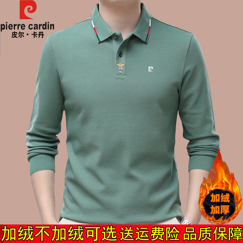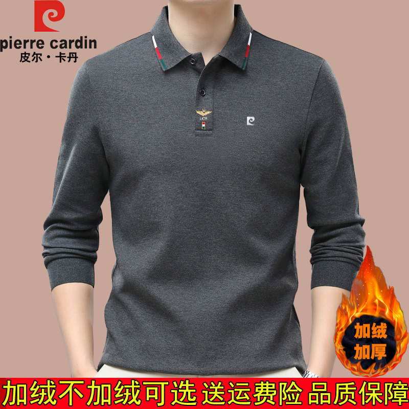 皮尔卡丹冬季纯棉加绒加厚长袖t恤本命年红色翻领保暖体恤打底衫