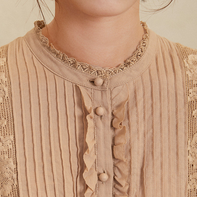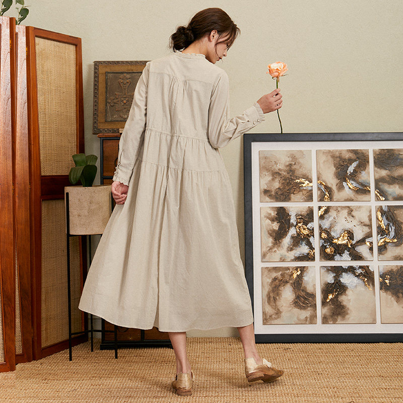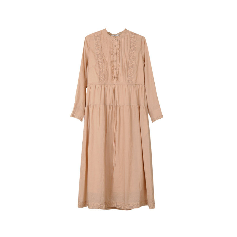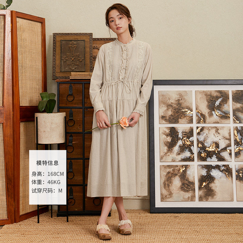 TALASA商场同款纯棉连衣裙2025年秋新款法式复古蕾丝拼接设计长裙