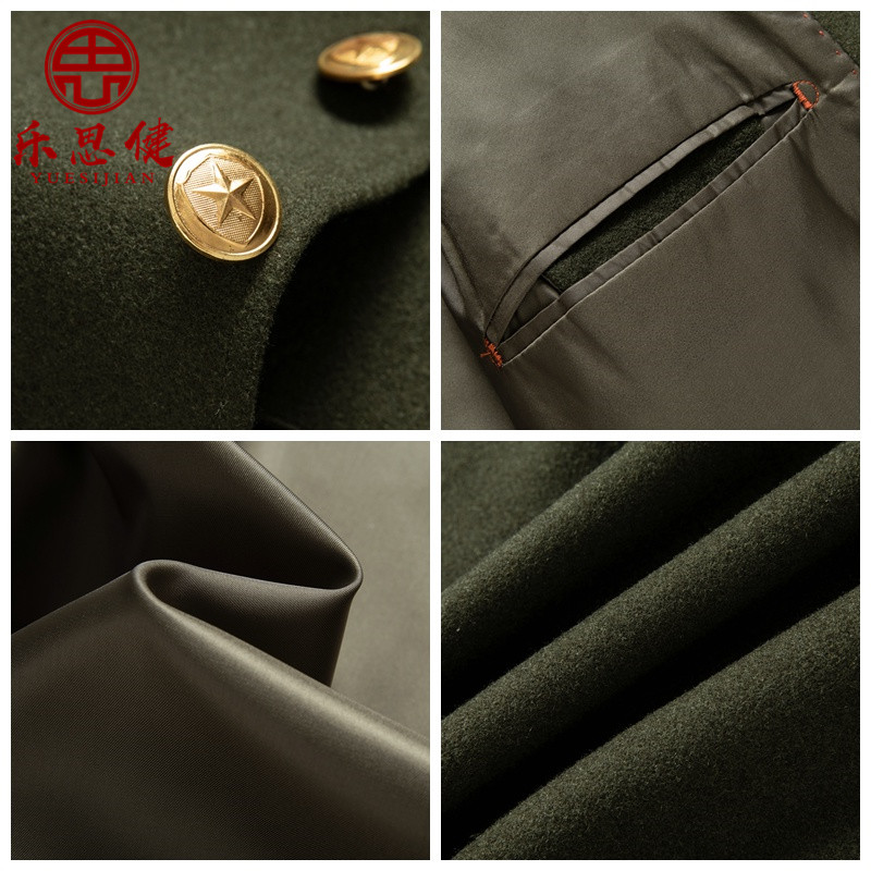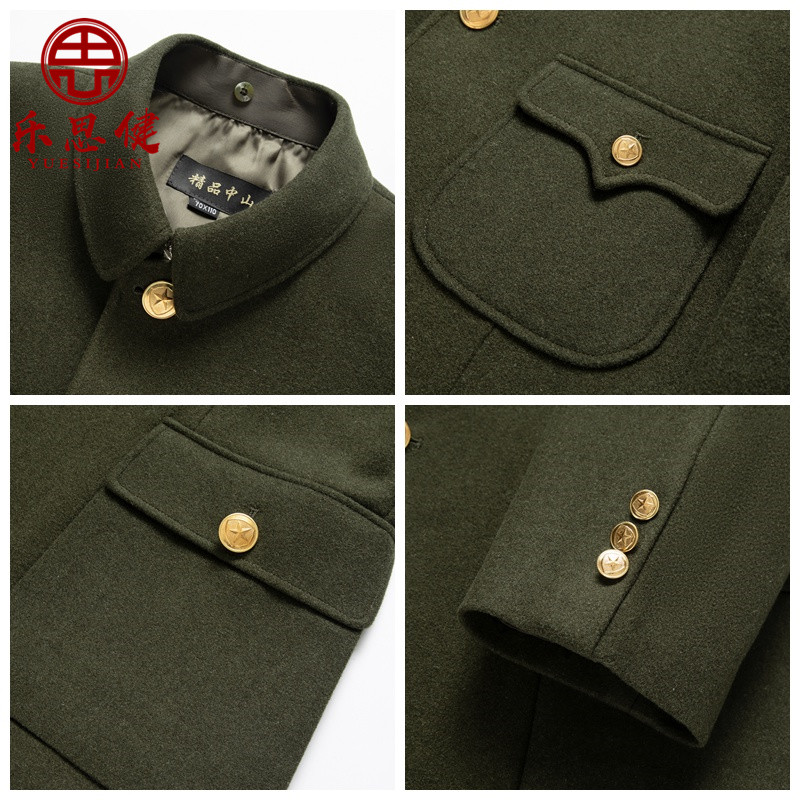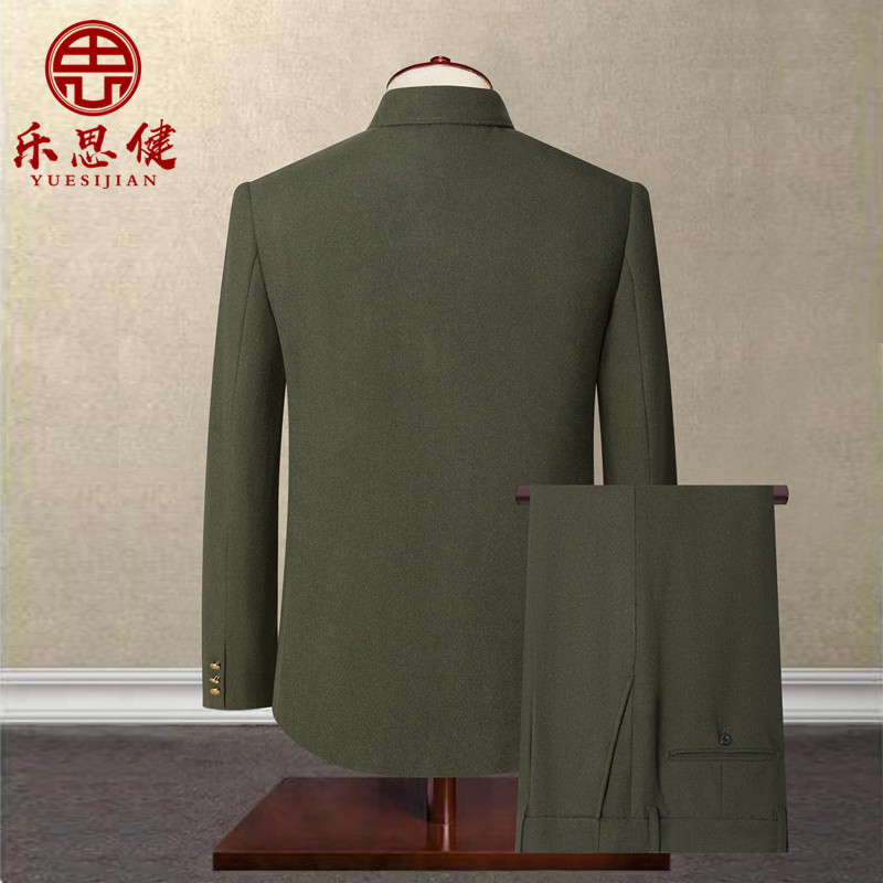 羊毛呢军绿中山装男套装中老年宽松爷爷装中国风中式礼服冬装
