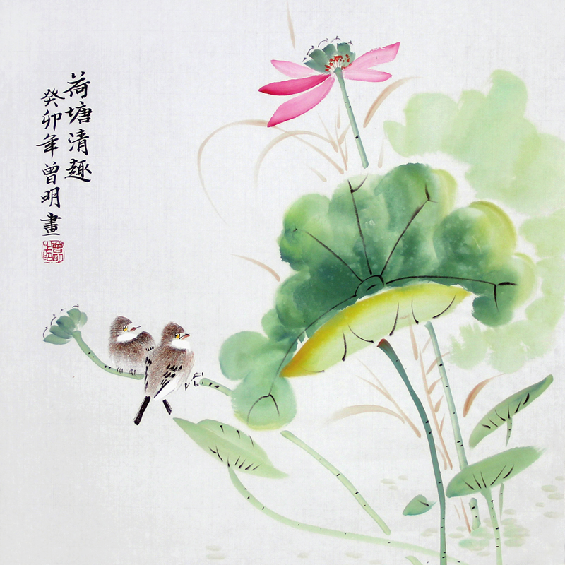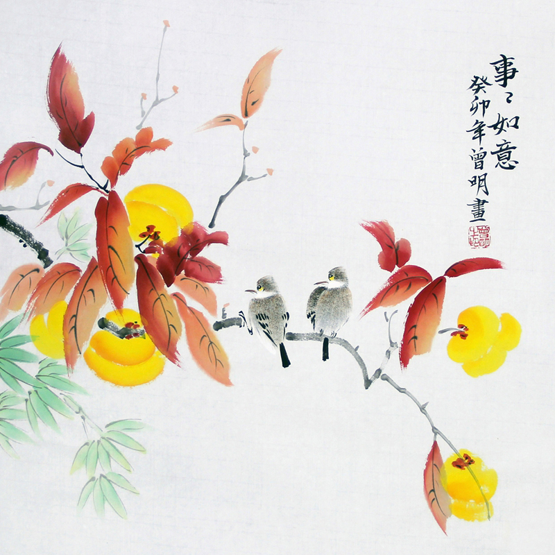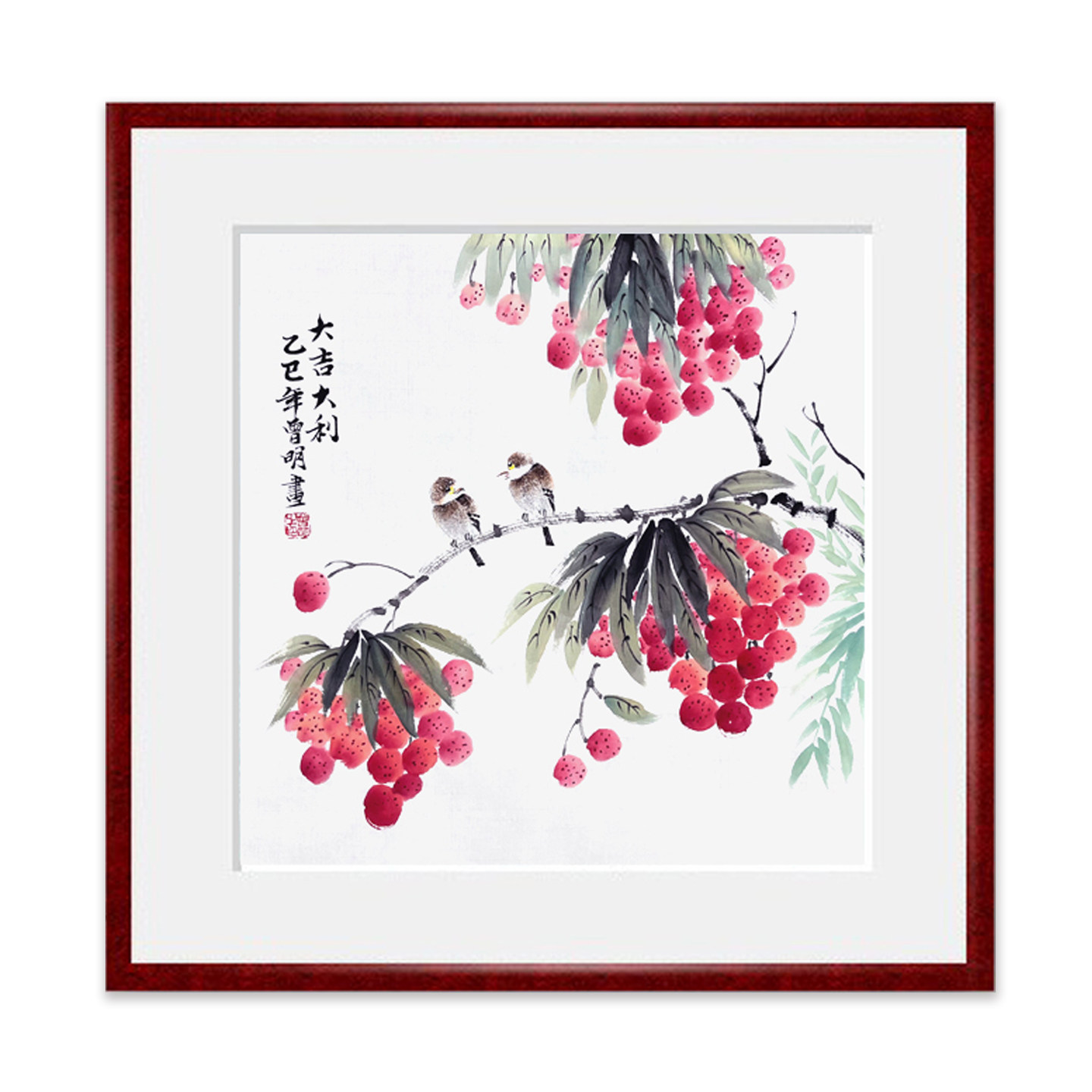曾明手绘真迹国画花鸟画玄关餐厅挂画葫芦葡萄荷花紫藤柿子荔枝画