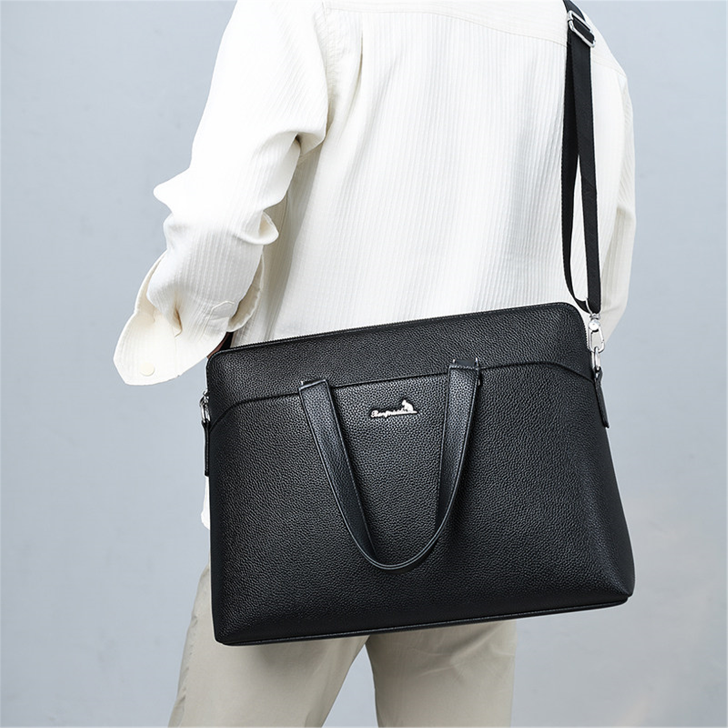男包手提包商务大容量公文包电脑包休闲单肩斜跨包办公文件包横款