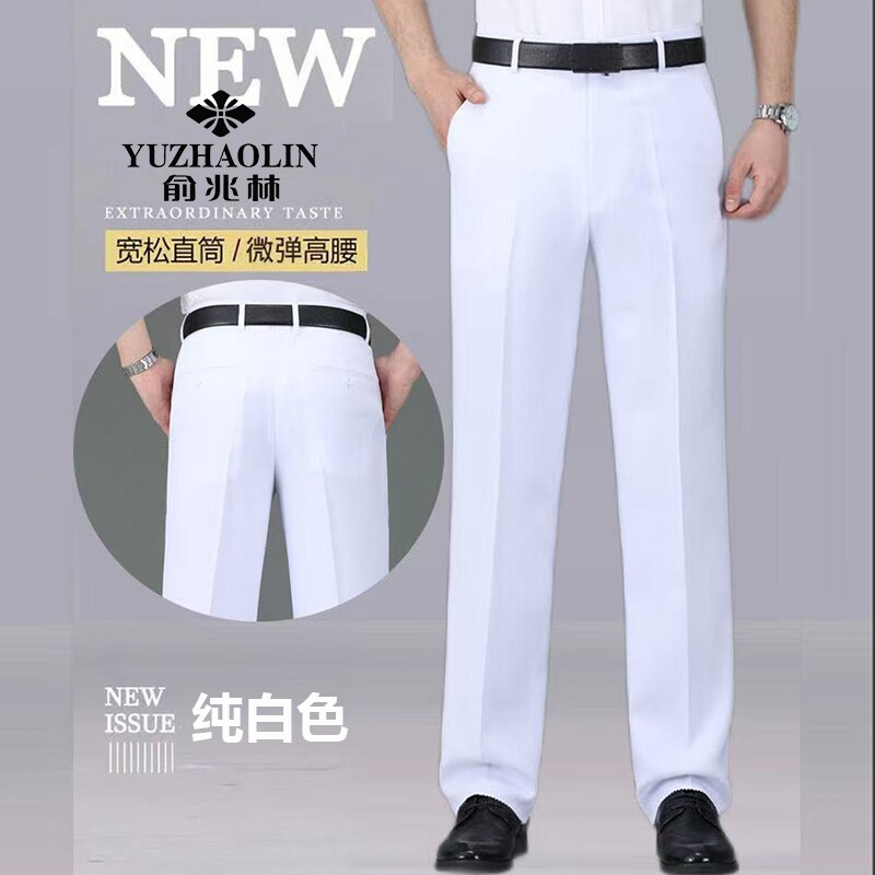 俞兆林垂感桑蚕丝西裤男秋冬厚款中年高腰宽松直筒免烫职业装男裤