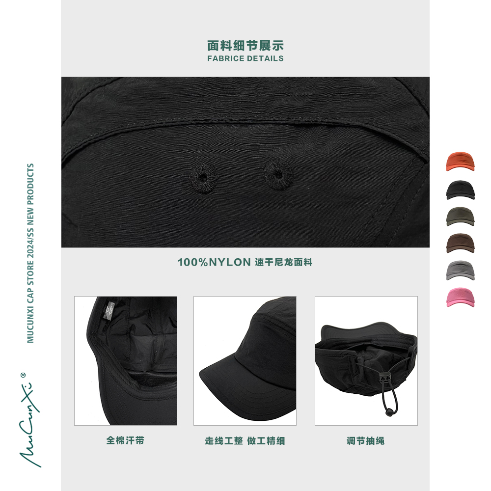 MUCUNXI 日系抽绳纯色速干鸭舌帽夏季户外运动棒球帽五片帽男女