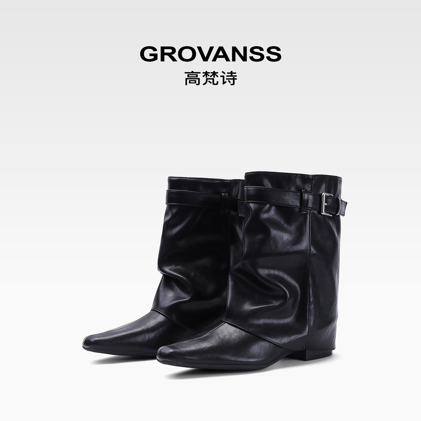 高梵诗新款尖头大筒围短靴裤管靴