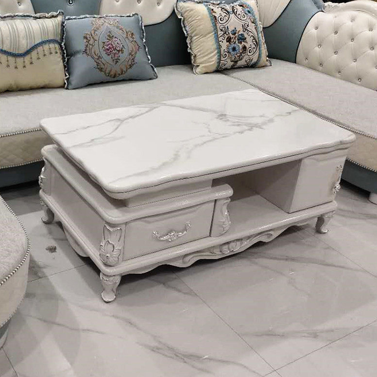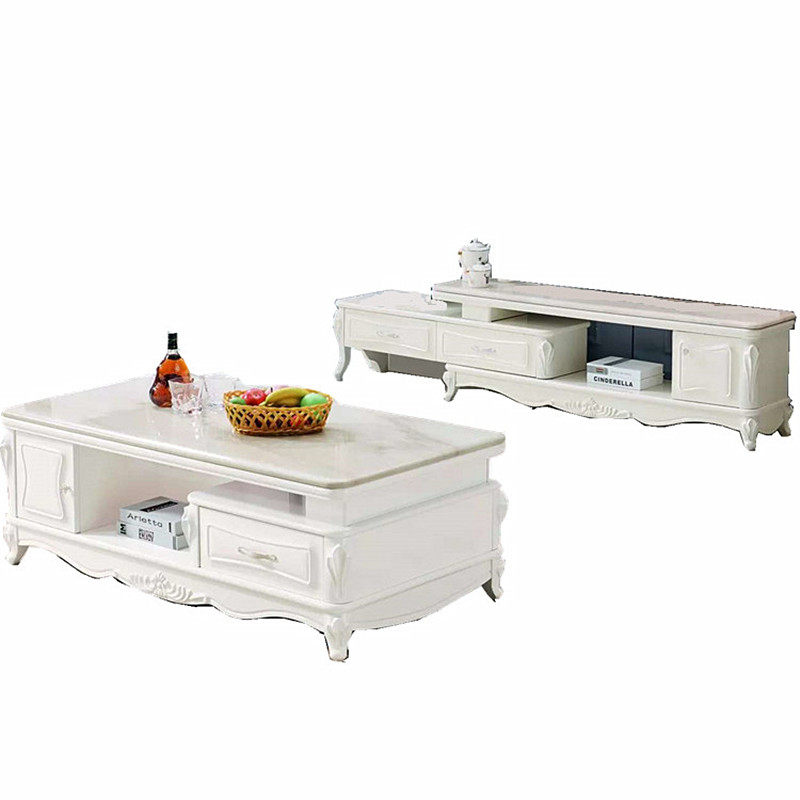 茶几电视柜组合 组装 现代简约 雕花 大理石茶几客厅实木小户型