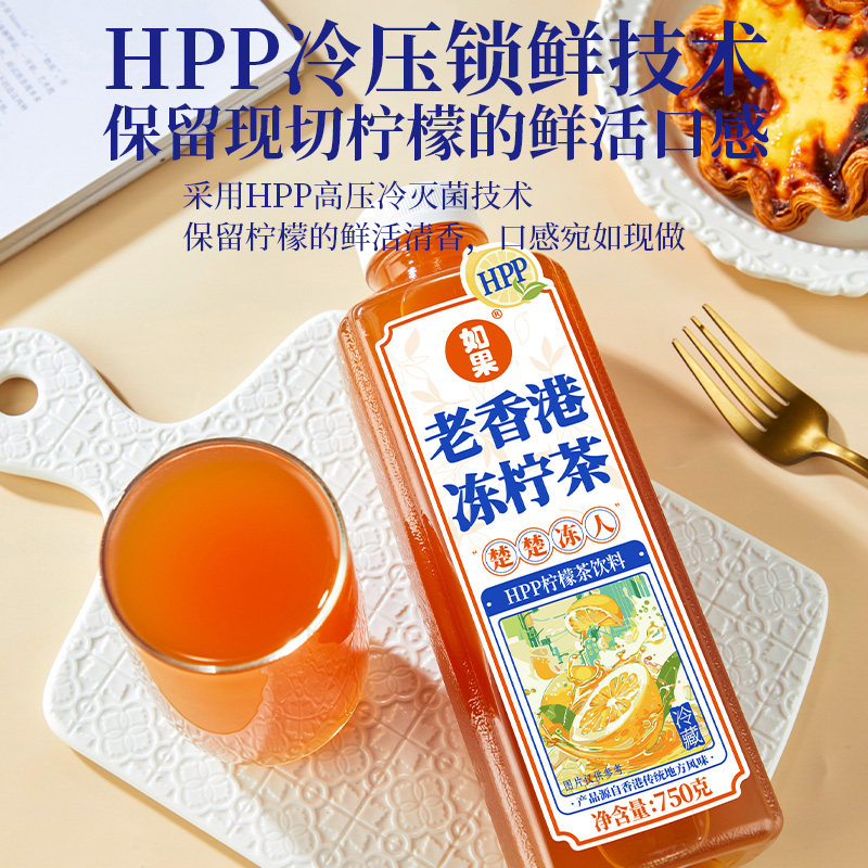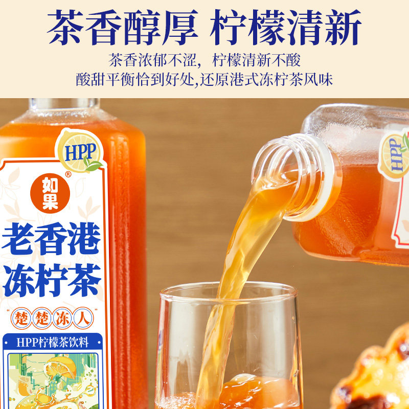 【新品】如果HPP老香港冻柠茶柠檬茶饮料750g家庭装新鲜果汁新鲜