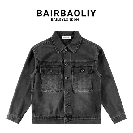 BAIRBAOLIY男装秋冬上新翻领做旧男士轻奢休闲百搭设计感牛仔夹克