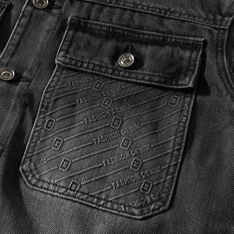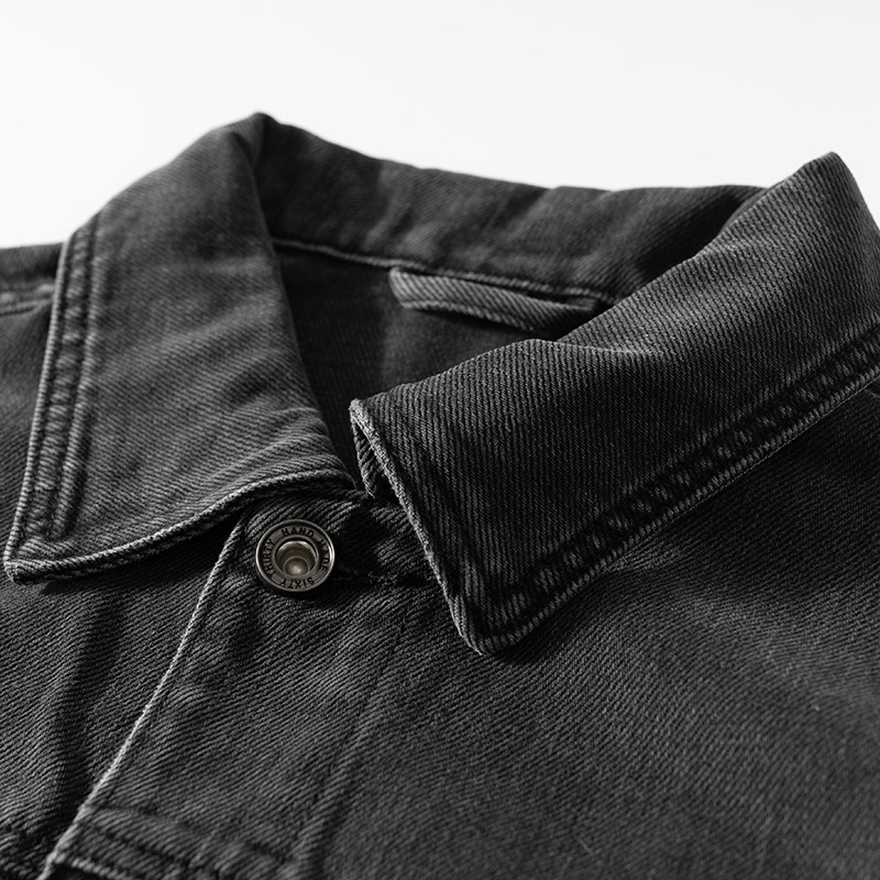 夹克男士牛仔褂外套纯棉工作服工装加厚电焊服翻领单排扣牛仔衣