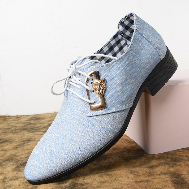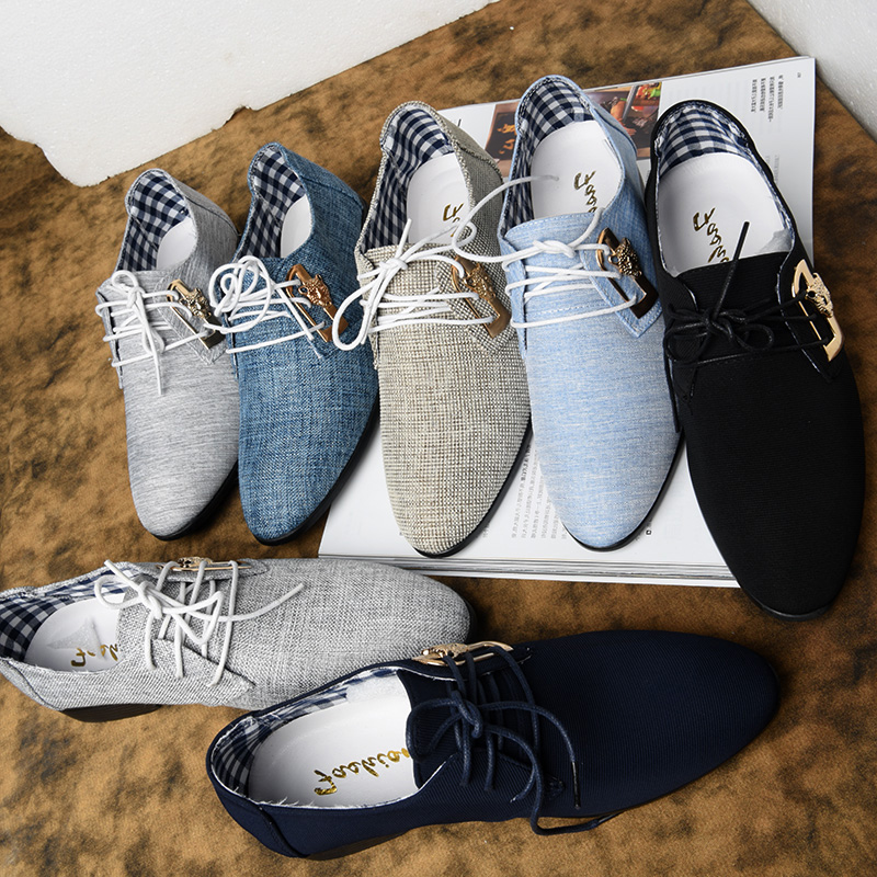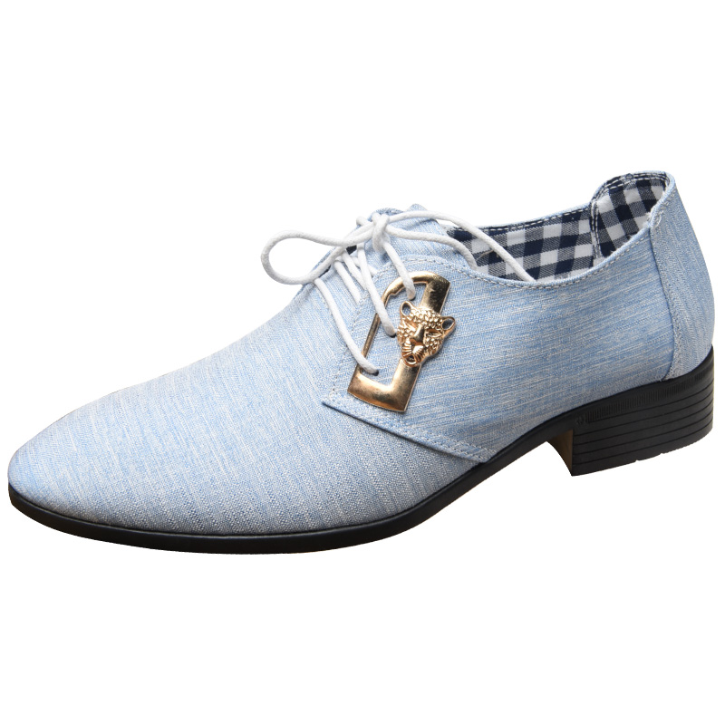 英伦潮男发型师鞋子韩版商务尖头男休闲鞋透气帆布皮鞋男夏季青年