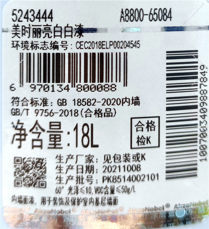 多乐士美时丽亮白墙面漆假一赔十