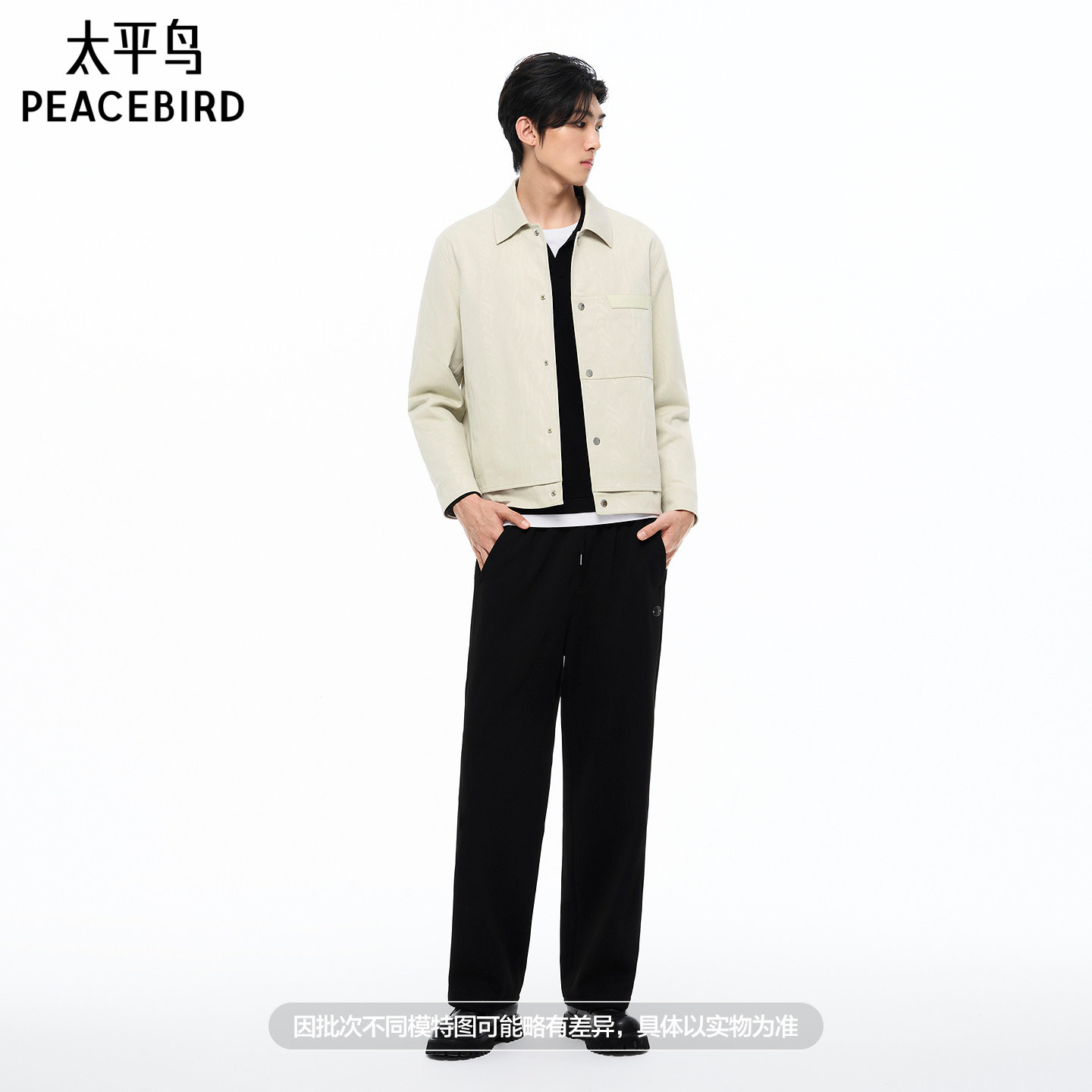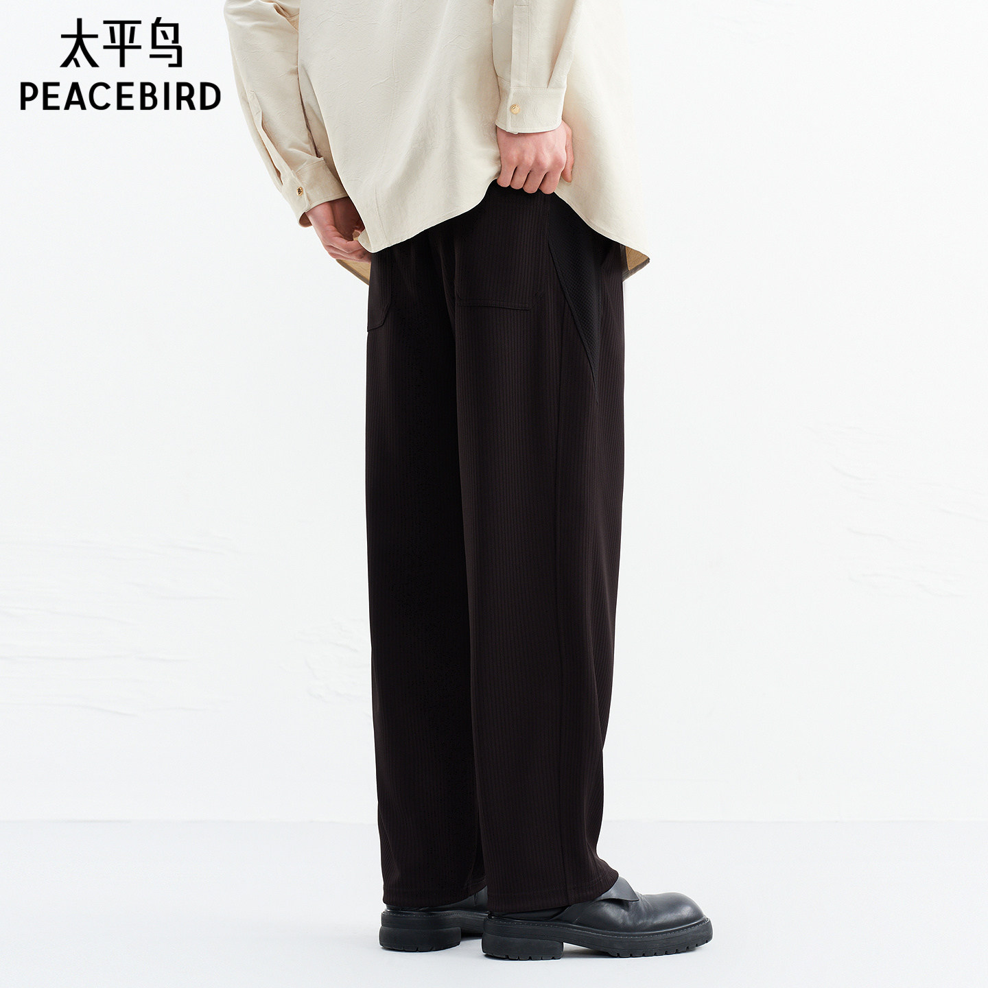 【商场同款】太平鸟男装 2026年春季新款抽绳黑色休闲裤B1GMG1235