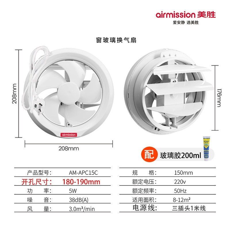 金羚美胜排气扇卫生间6/8寸换气璃窗式排风扇圆形扇扇变频节能玻
