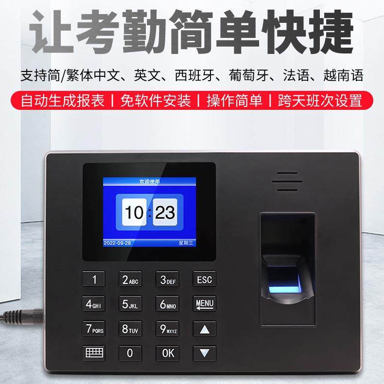 考勤机F06指纹识别跨夜排班25种外语智能生成报表打卡员工上下班