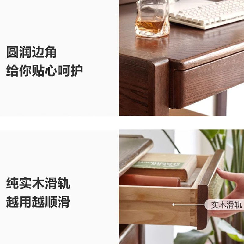 全实木红橡木可升降书桌儿童学习组合书桌书房办公桌红橡木胡桃色