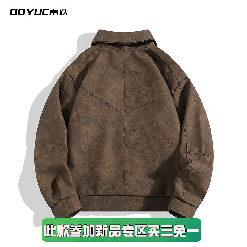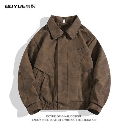 BOYUE帛跃扎染皮衣外套美式复古棕色短款机车帅气高级感夹克男女