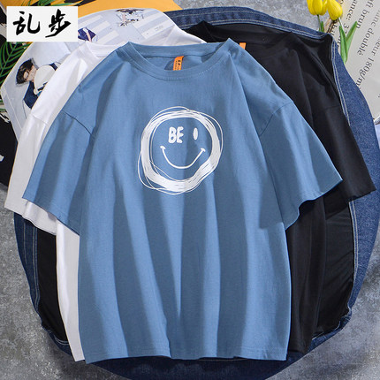 笑脸短袖T恤男夏季乱步情侣装百搭韩版潮流胖子加肥大码宽松体恤