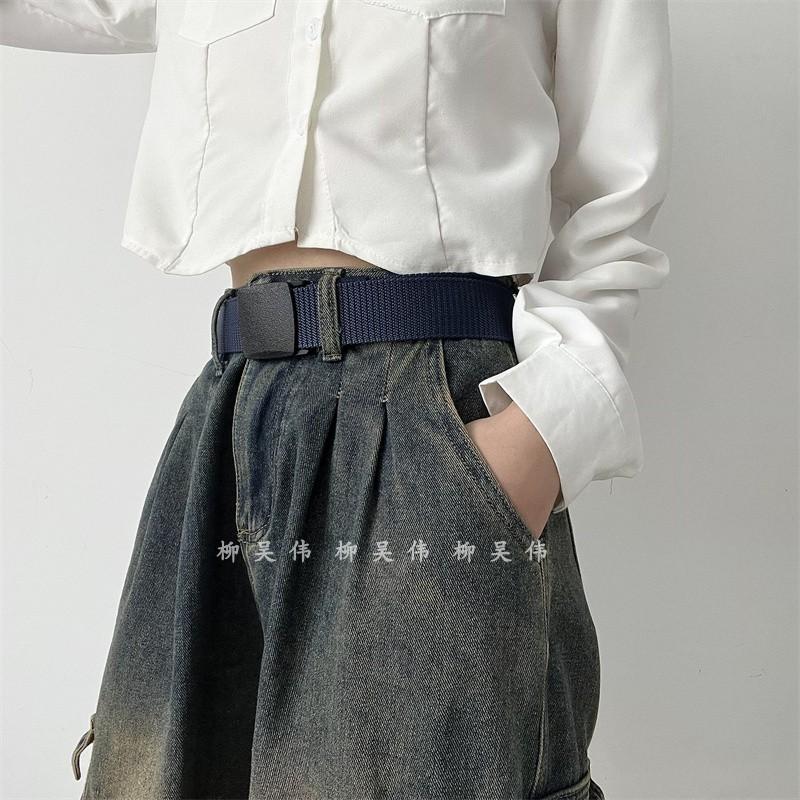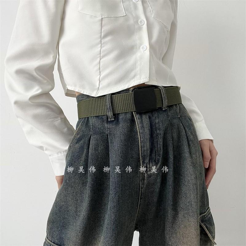 懒人高级感仿尼龙帆布腰带女配牛仔裤装饰学生军训男士裤带免打孔