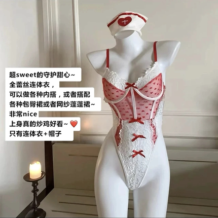 性感网红辣妹塑身连体睡衣蓬蓬裙套装纯欲风内搭蕾丝吊带护士制服