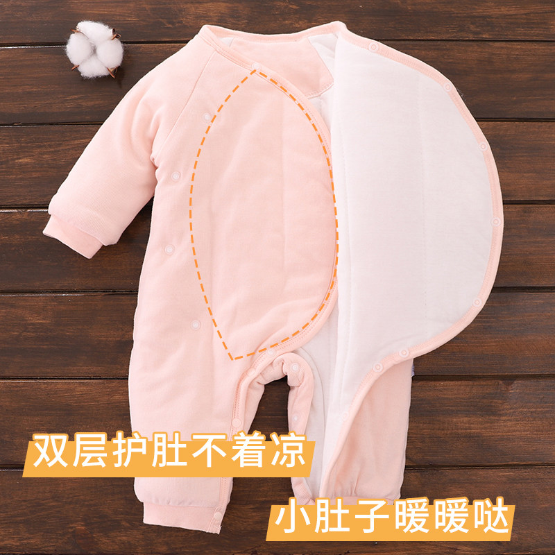 冬季婴儿加厚连体衣宝宝纯棉蝴蝶衣新生保暖棉衣爬服夹棉外出衣服