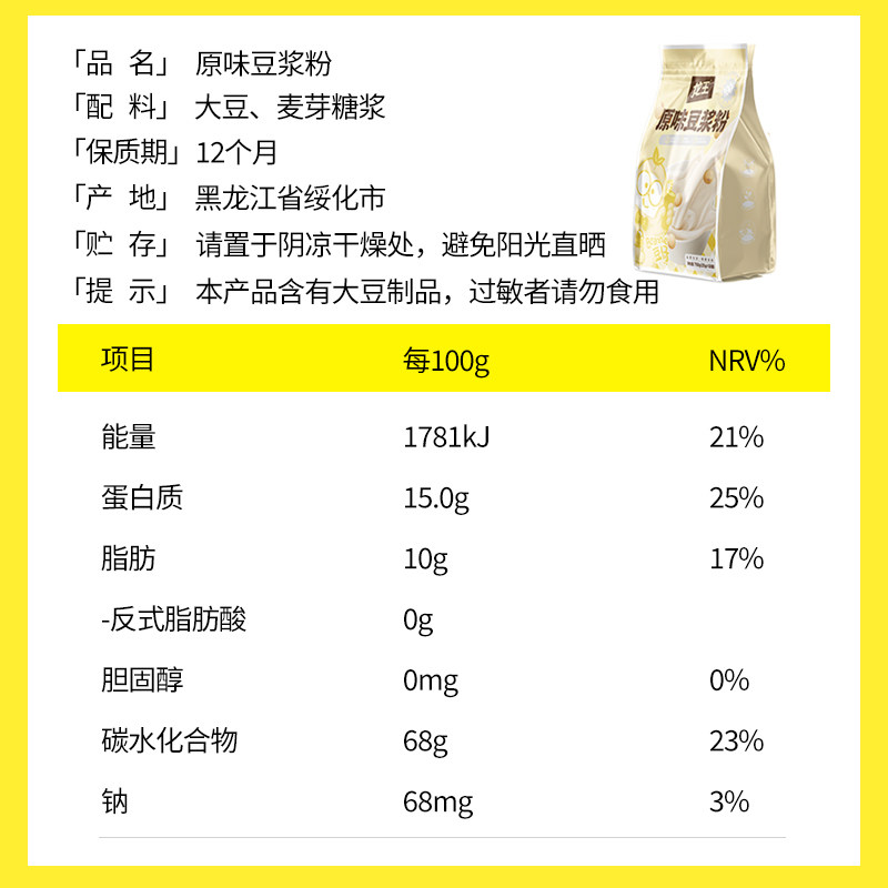 龙王原味黄豆浆粉家庭装750g学生儿童孕妇营养早餐代餐速溶冲饮