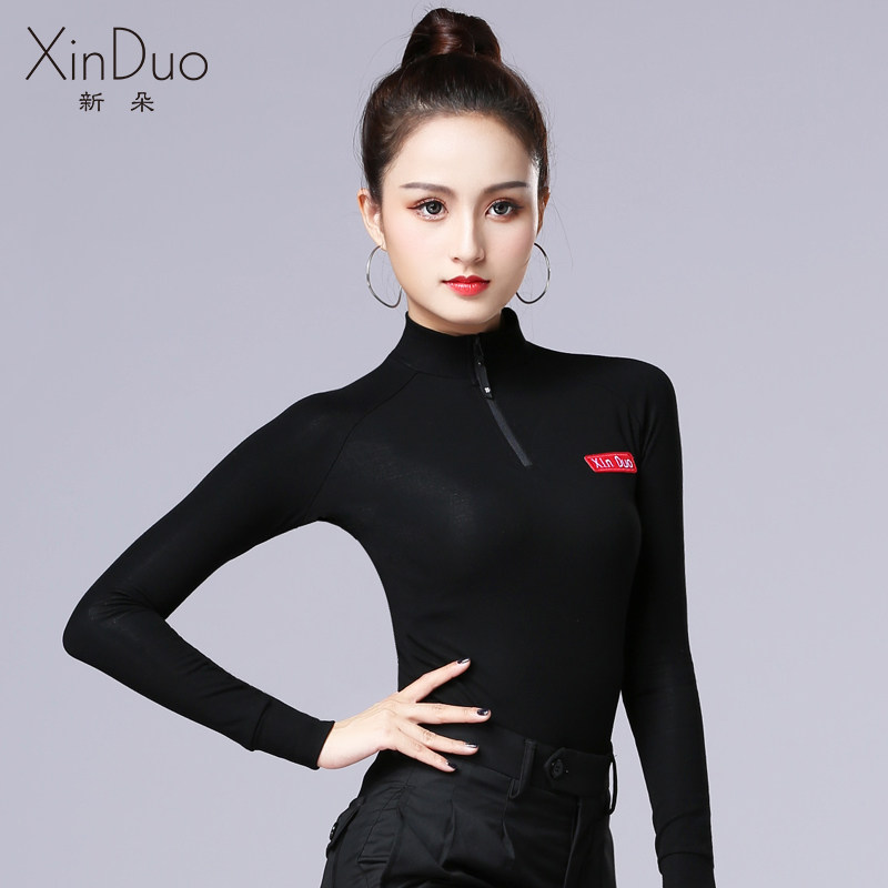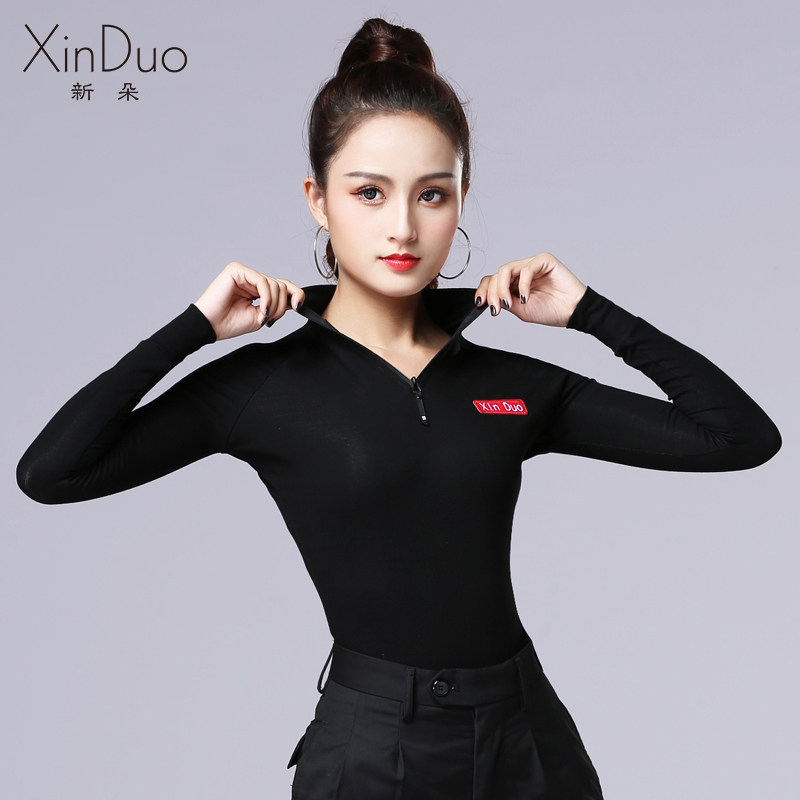 新朵摩登舞上衣女秋冬新款拉链加绒长袖国标舞拉丁舞交谊舞练功服