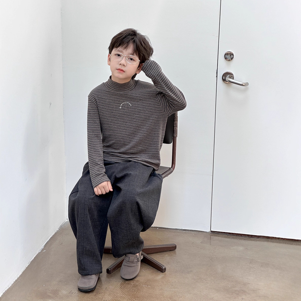 中小大童2025秋儿童百搭羊绒上衣男女童中领高弹条纹保暖打底衫潮