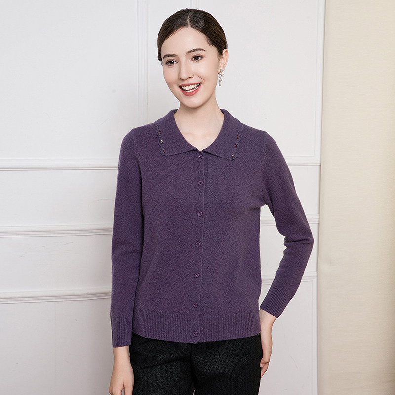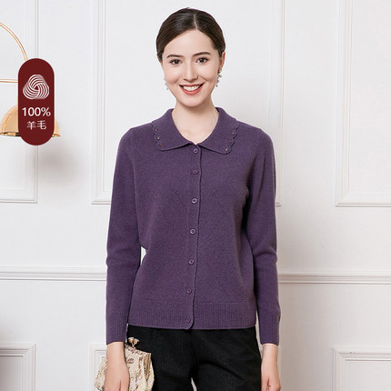 赏心岁月中老年妈妈羊毛衫针织开衫宽松大码妈妈2024冬装新款正品