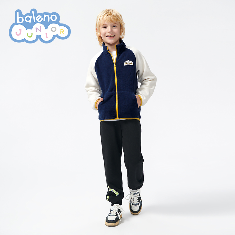 班尼路童装春秋中性儿童简约时尚撞色肩袖男女童保暖布绒外套上衣